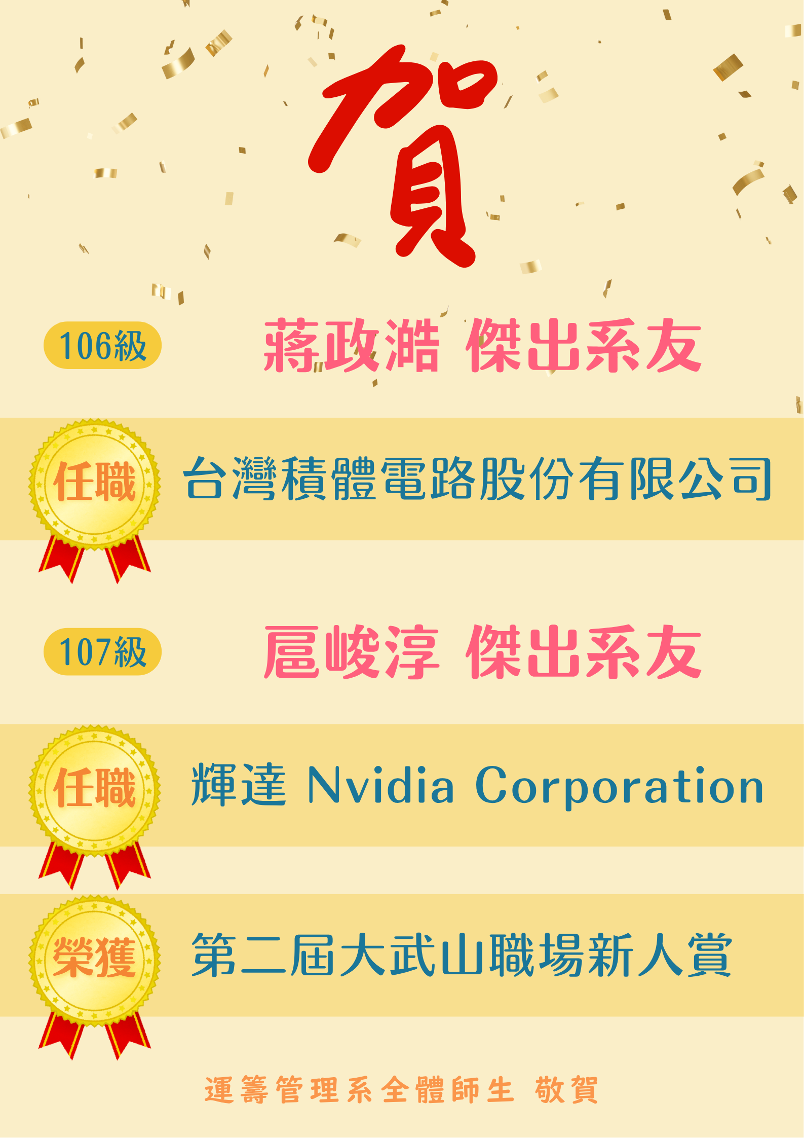 🎉 恭賀 本系傑出系友蔣政澔、扈峻淳