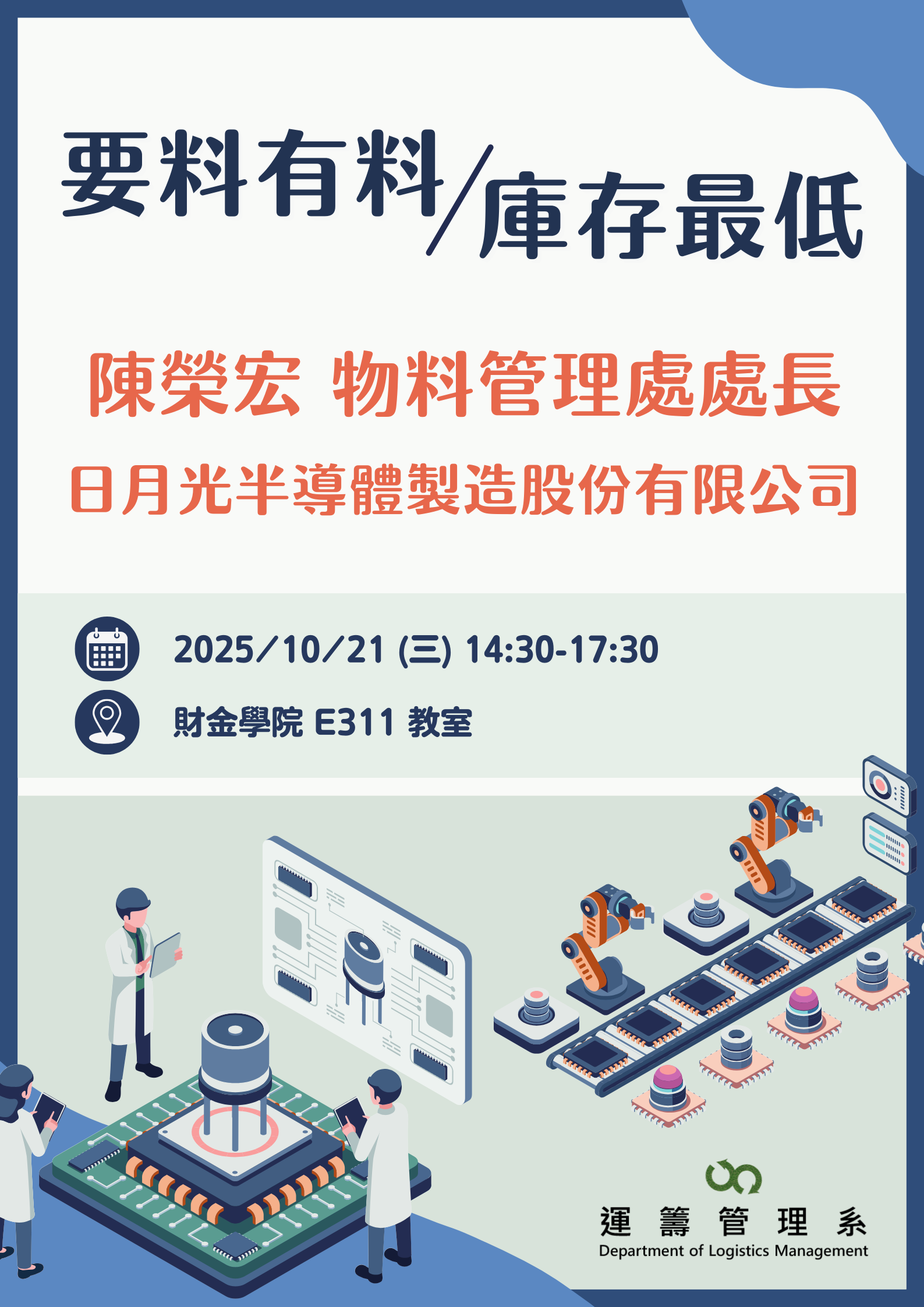 【講座】114年10月21日(二)-要料有料,庫存最低
